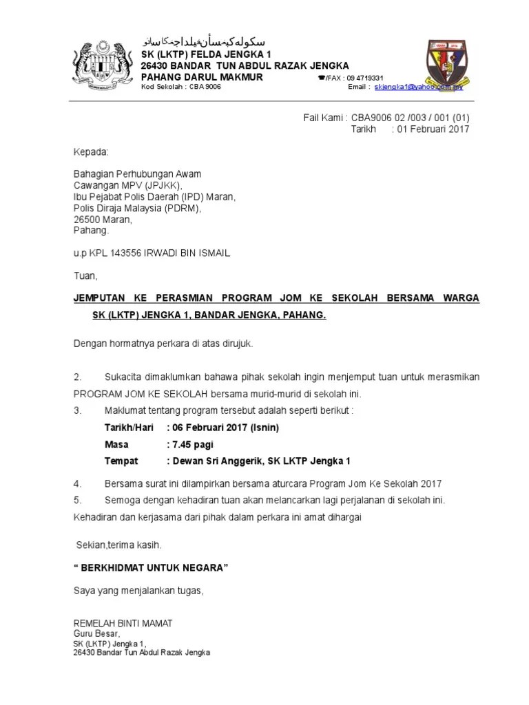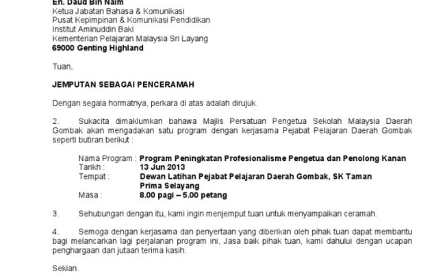 Sekolah menengah agama hj mohd yatim 3 skema . Taklimat & lantikan sebagai hakim bahas peringkat daerah 2018 →. Format surat rasmi permohonan cuti kerja in english. Tuan, jemputan sebagai penceramah program kaunseling berfokus sekolah sukan tunku mahkota ismail 2015. Kuliah jemputan masjid binjai bongkok, marang. 24 februari 2015 pengarah pejabat kesihatan daerah sepang jalan salak 43900 sepang jemputan sebagai penceramah .